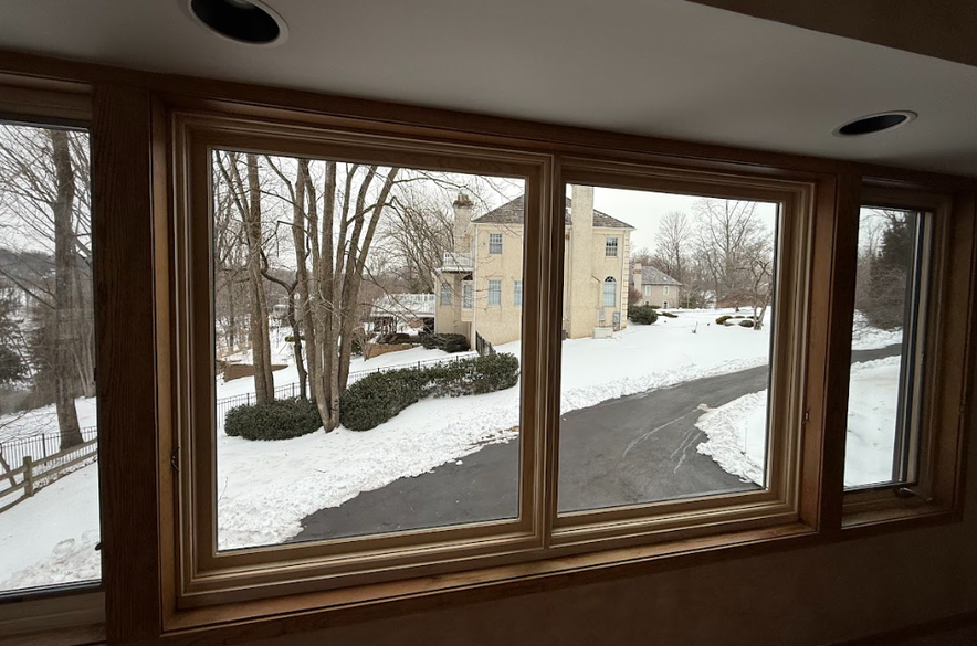 From there, each Andersen 400 Series unit was precisely leveled, secured, and aligned to ensure smooth operation and a clean, balanced appearance from both inside and out. Every exterior perimeter was fully sealed and weatherproofed to protect against air and moisture infiltration. Throughout the process, protective coverings were used to keep interior spaces clean and minimize disruption to the homeowners’ daily routine. This level of attention to detail is especially important in Pennsylvania winters, where proper sealing and insulation play a major role in preventing drafts, moisture intrusion, and long-term operational concerns.