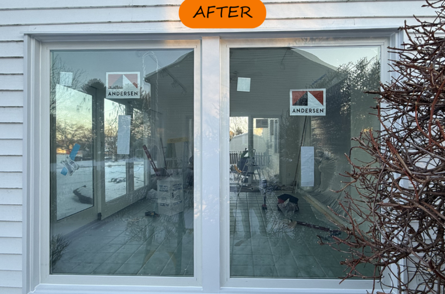 The homeowner wanted more natural light, better insulation, and updated patio access — without compromising durability. Our team delivered by replacing an existing sliding glass door with two Andersen® 100 Series picture windows and upgrading a second patio door with a new Andersen® Perma-Shield® gliding patio door.